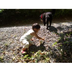 オーナーさんとオーナーさんの愛犬モカと森の中を走り周り、