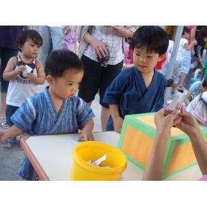 幼稚園の夏祭りに参加。しょうちゃんアリガト。