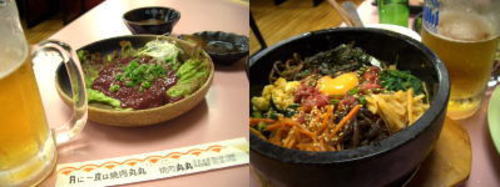 レバ刺しにビビンバ。